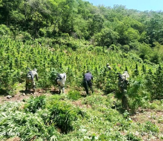 Chihuahua.- En cumplimiento de la Estrategia Nacional de Seguridad del Gobierno de México, en Chihuahua, integrantes de la Guardia Nacional localizaron y destruyeron un plantío de marihuana, con una extensión de mil 300 metros cuadrados aproximadamente. Durante patrullajes de seguridad y prevención del delito en el poblado de Cieneguitas de...