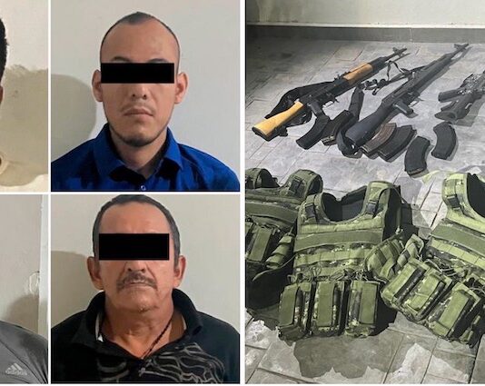 Culiacán, Sinaloa.- En cumplimiento de la Estrategia Nacional de Seguridad del Gobierno de México, en Sinaloa, integrantes de la Guardia Nacional detuvieron a cuatro personas en posesión de armento y material bélico. Personal de esta fuerza de seguridad pública recibió una denuncia anónima, que reportaba la presencia de hombres armados,...