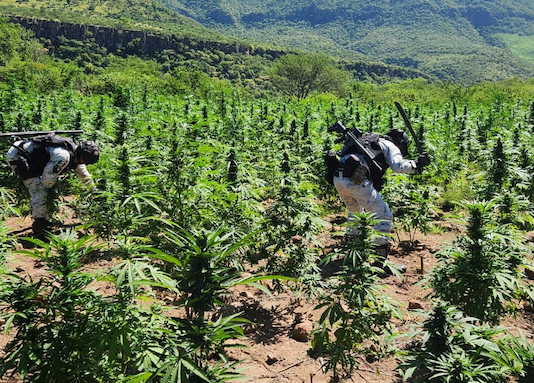 Guadalajara, Jalisco.- En cumplimiento de la Estrategia Nacional de Seguridad Pública, en el estado de Jalisco, integrantes de la Guardia Nacional (GN) localizaron y destruyeron dos plantíos de posible marihuana con extensión aproximada de 13 mil metros cuadrados. Durante patrullajes de seguridad y prevención del delito en la comunidad de...