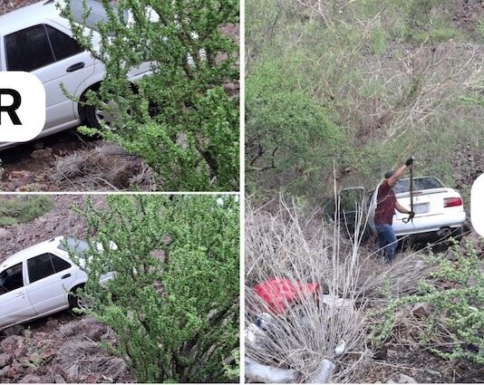 Guaymas, Sonora.- Sobre la carretera que conduce al Parque Industrial ‘Rodolfo Sánchez Taboada’, (Paraje Viejo) al sur de Guaymas, un automóvil se fue al voladero, unidad encontrada en estado de abandono. La localización se dio cerca de las 07:30 horas, por parte de trabajadores del parque industrial, quienes notificaron a...