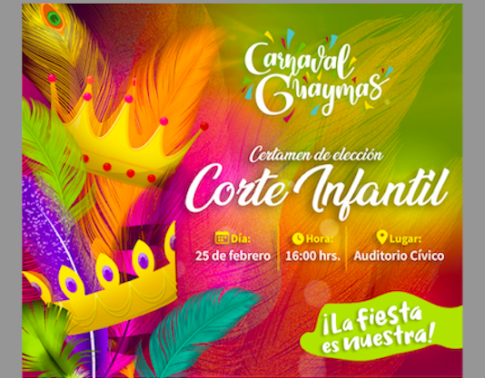 Guaymas, Sonora.- Este 25 de febrero te esperamos en el certamen de elección de la corte infantil del Carnaval Guaymas 2025 ¡La fiesta es nuestra!