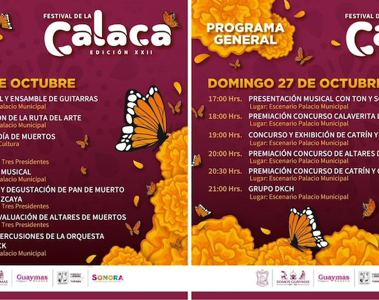 Durante este sábado 26 y domingo 27, no te pierdas de las actividades del Festival de la Calaca edición XXII en la explanada de la Plaza Tres Presidentes y en el escenario Palacio Municipal. Habrá exposiciones fotográficas y pictóricas a cargo del Taller de Fotografía de la Universidad Novo Hispana,...