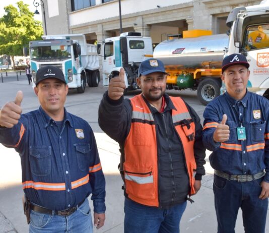 Hermosillo, Sonora.- Las acciones de mantenimiento a vialidades y limpieza que diariamente realiza el Ayuntamiento de Hermosillo se verán reforzadas, destacó Antonio Astiazarán al entregar dos camiones de volteo y una petrolizadora que no solamente fortalece la labor operativa de dichas áreas sino las dignifica. El presidente municipal entregó las...