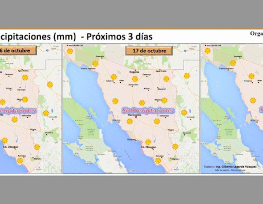 Hermosillo, Sonora.- Viernes, basándose en la valoración y análisis de la información meteorológica en general y con base en información del Servicio Meteorológico Nacional y diferentes fuentes oficiales de los Estados Unidos, la Coordinación Estatal de Protección Civil emite el siguiente pronóstico: Durante hoy, la masa de aire frío asociada...
