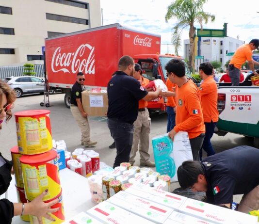Hermosillo, Sonora.- Armando Castañeda Sánchez, coordinador de Protección Civil Sonora, junto con representantes de Construplan y Coca Cola, además de personal de la Coordinación Estatal de Protección Civil (CEPC), entregaron 5.6 toneladas de apoyo, en el Centro de Acopio, en favor de los damnificados por las recientes lluvias torrenciales...