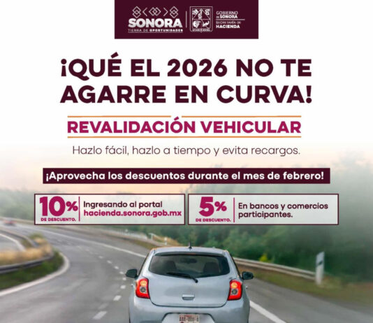 Hermosillo, Sonora.- La Secretaría de Hacienda del Gobierno de Sonora informó que durante el mes de febrero continúan vigentes los incentivos por pronto pago de la revalidación vehicular 2026, como parte de las acciones para facilitar el cumplimiento oportuno de las obligaciones fiscales. Durante febrero, las y los contribuyentes que realicen...