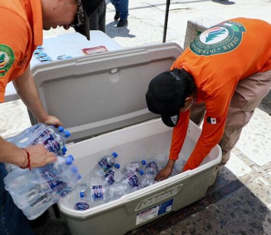 Hermosillo, Sonora.- El Gobierno de Sonora, a través de la Coordinación Estatal de Protección Civil (CEPC) y la Secretaría de Salud, realizó hoy la entrega de más de 800 litros de agua y sobres de suero en distintos puntos de la ciudad de Hermosillo, para prevenir golpes de calor...