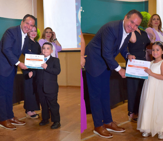 Hermosillo, Sonora.- Una ceremonia llena de orgullo, sonrisas y aplausos encabezó el presidente municipal Antonio Astiazarán durante la graduación de la generación 2023-2025 de Estancias Infantiles DIF Hermosillo, donde reafirmó su compromiso con la niñez y su desarrollo pleno. Acompañado por Madeleine Bonnafoux, directora de DIF Hermosillo, celebró este importante...
