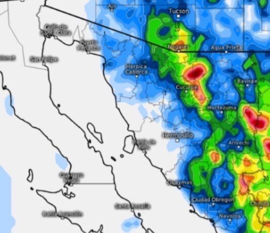 Hermosillo, Sonora.- Asímismo, algunas lluvias ligeras sobre el sector norte. A su vez, las lluvias más importantes se podrían presentar sobre los municipios de Álamos, Rosario, Quiriego, Suaqui Grande, Ónavas, Yécora, Sahuaripa, Bacanora, Arivechi, San Javier, Soyopa, Navojoa, Cd. Obregón, Bácum, así como un posible acercamiento a los municipios...