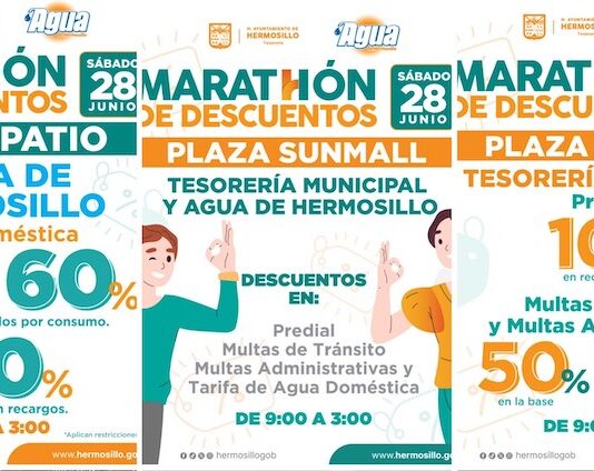 Hermosillo, Sonora.- Para que las y los contribuyentes aprovechen los descuentos y se pongan al corriente, este sábado 28 de junio se realizará el Maratón de Descuentos de Tesorería Municipal en Plaza Patio y Sunmall. Yazmina Anaya Camargo, directora de Ingresos de Tesorería, explicó que es la decimotercera ocasión en...