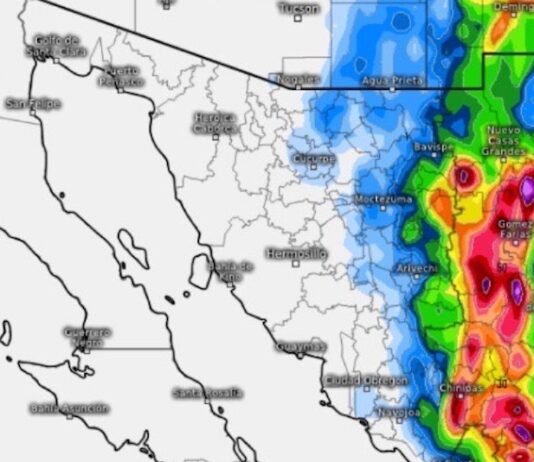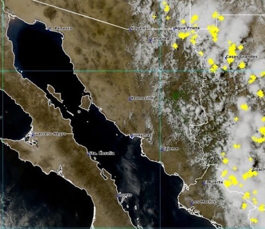 Hermosillo, Sonora.- En imágenes satelitales se muestra línea de tormentas en desarrollo sobre región limítrofe con Chihuahua. Se prevé que durante las próximas horas continúe su formación y ocasione lluvias puntuales fuertes con descargas eléctricas sobre municipios de la región serrana del estado de Sonora. Se recomienda extremar precauciones y evitar...
