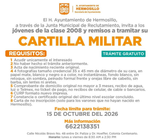 Hermosillo, Sonora.- El personal de la dirección de Servicios de Gobierno de la Secretaría del Ayuntamiento de Hermosillo ya está listo para atender a los jóvenes clase 2008 y remisos para asistirlos en el trámite por primera vez de su cartilla del Servicio Militar Nacional, conforme a la convocatoria...