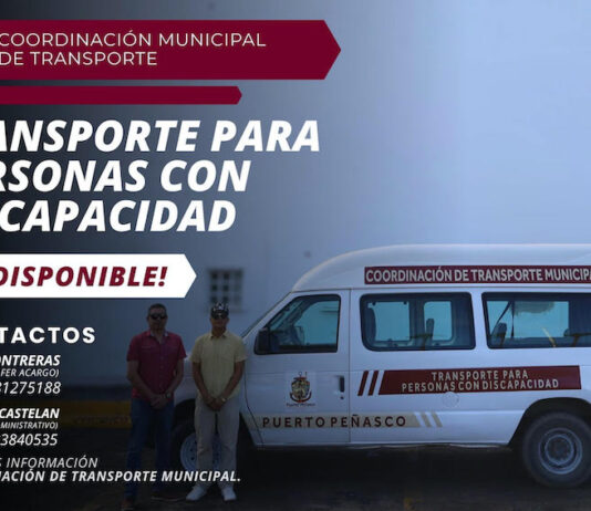 Puerto Peñasco.- Para atender la movilidad de las personas con discapacidad, el gobierno municipal de Puerto Peñasco, a través de la Coordinación de Transportes, pone a disposición de manera gratuita el servicio de transporte especial para movilización dentro del casco urbano.
