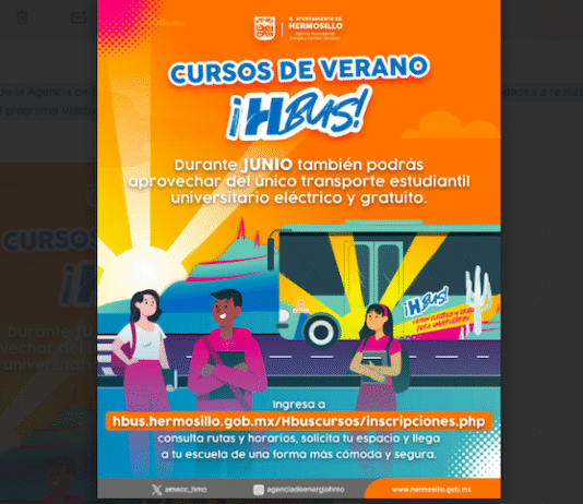 Hermosillo, Sonora.- A petición de los usuarios universitarios de H Bus y de acuerdo con sus necesidades, a partir de este lunes 02 de junio operarán 6 de las 9 rutas del programa HBUS, informó Carla Neudert Córdova. La titular de la Agencia Municipal de Energía y Cambio Climático explicó...