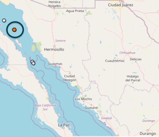Tembló hoy en Puerto Peñasco; sismo de 4.1 grados, en la escala de Richter, informa el SSN. M 4.1 2025-05-23 13:16:59 (hora centro)
