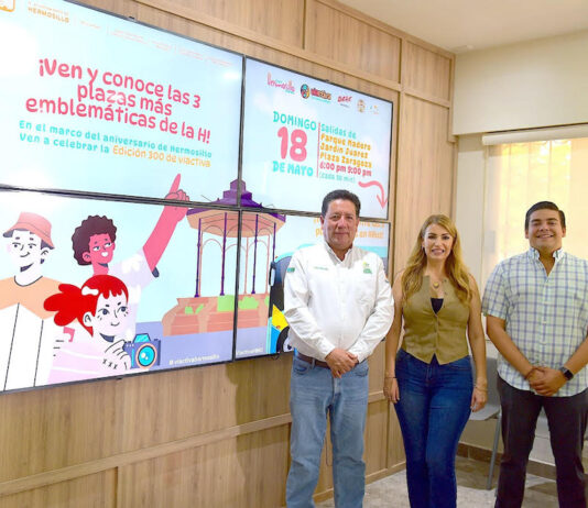 Hermosillo, Sonora.- Hermosillo se vestirá de fiesta este 18 de mayo con motivo de su 325 aniversario de fundación, anunció el Gobierno Municipal que ha preparado la edición 300 de Viactiva donde familias podrán disfrutar actividades en la Plaza Zaragoza, Parque Madero y Jardín Juárez. Fernanda Cisneros Rodríguez, directora de...