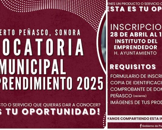 Puerto Peñasco, Sonora.- El Gobierno Municipal de Puerto Peñasco, a través del Instituto del Emprendedor y S.A.R.E., invita a los emprendedores peñasquenses a inscribirse en la Feria Municipal del Emprendedor 2025, cuyo objetivo es reunir a talentos locales para exhibir sus productos o servicios. Esta iniciativa representa una excelente...