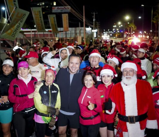 Hermosillo, Sonora.- Santa Claus se puso los tenis y salió a correr por el bulevar Colosio, contagiando de buen ánimo a decenas de familias que participaron en el Trote Navideño con Santa, actividad a la que se sumó el presidente municipal Antonio Astiazarán como parte de las celebraciones decembrinas que...