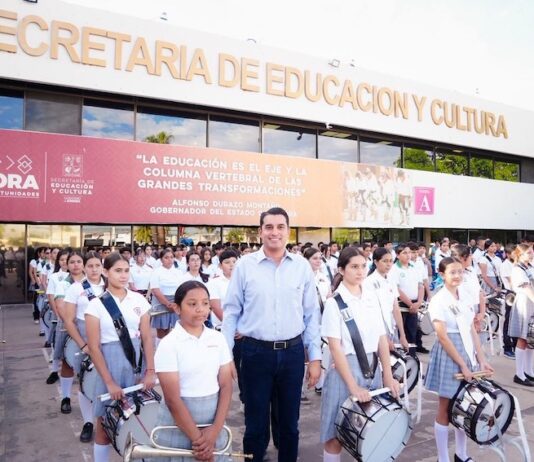 Hermosillo, Sonora.- Con la participación de 184 alumnos de seis secundarias de Hermosillo, el Gobierno de Sonora, a través de la Secretaría de Educación y Cultura (SEC) impulsó la creación de la primera Banda de Guerra Monumental en la entidad.
