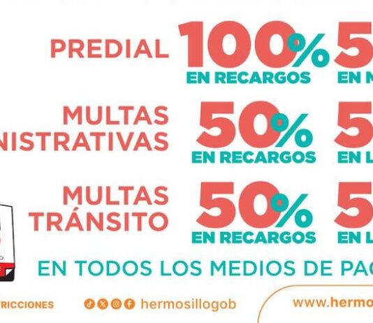 Hermosillo, Sonora.- El Ayuntamiento de Hermosillo, a través de la Tesorería Municipal, invita a las y los contribuyentes a aprovechar los descuentos especiales que se aplicarán del 13 al 17 de noviembre con motivo del Buen Fin 2025, en todos los medios de pago disponibles. Durante este periodo, se ofrecerán...