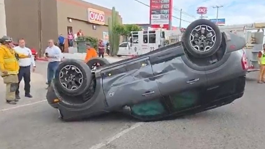 #Guaymas Choque-volcamiento frente al Gran Patio; tres personas heridas; ocurrió la tarde de hoy, en carretera internacional, salida norte de Guaymas.