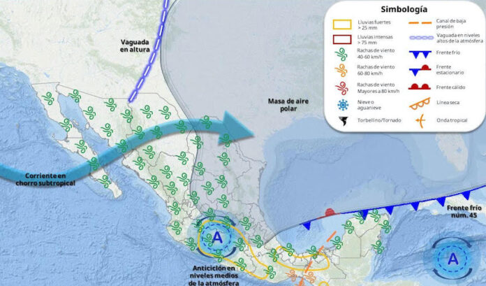 Se prevé el acercamiento de un nuevo sistema frontal hacia el norte de México durante el día 22 de abril. Dicho sistema podría generar rachas de viento fuertes y un ligero descenso en las temperaturas máximas a su paso.