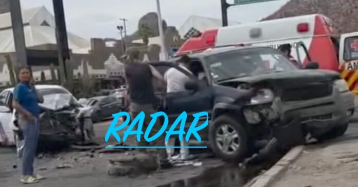 Guaymas, Sonora.- La tarde de este día miércoles se registró un fuerte choque en la calzada Agustín García López, frente a la tienda Ley El Vigía, con saldo de 5 personas lesionadas y daños materiales de elevada cuantía.