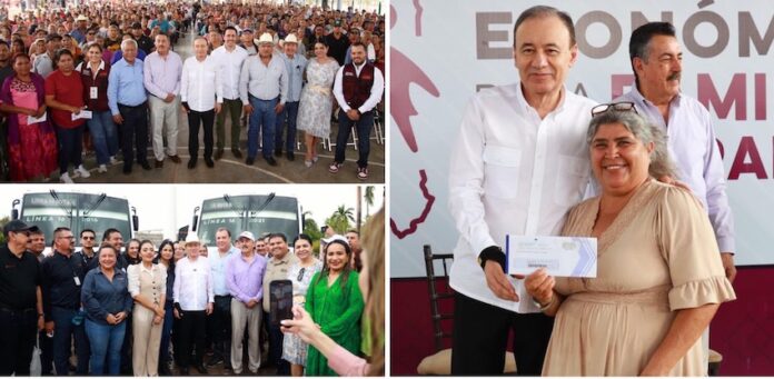 En una intensa gira de trabajo por el sur del estado y en respuesta a las necesidades de la población de este sector, el mandatario sonorense, acompañado del presidente municipal de Ciudad Obregón, Javier Lamarque Cano y el secretario de Bienestar en Sonora, Fernando Rojo de la Vega, detalló que con el programa de Fortalecimiento Económico se otorgarán 2 mil 500 pesos bimestrales durante el ejercicio fiscal 2025 a familias de los municipios de Cajeme, Bácum y San Ignacio Río Muerto.