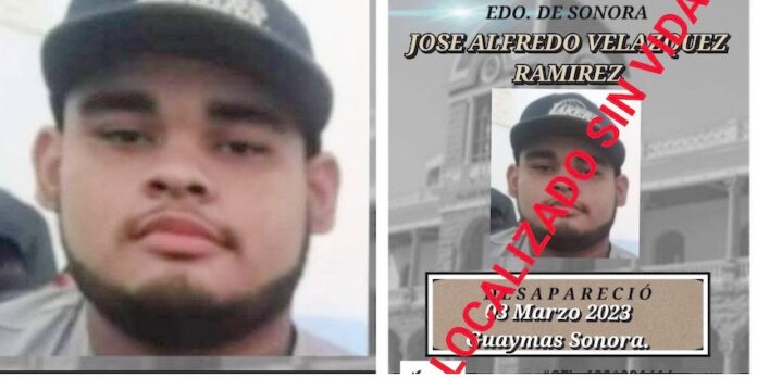 Guaymas, Sonora.- El joven José Alfredo Velázquez Ramírez, de 21 años de edad, vecino del fraccionamiento Misión del Sol, en Guaymas, ha sido hallado sin vida.