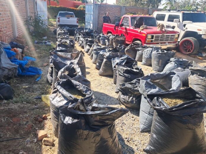 Guadalajara, Jalisco.- Agentes de la Guardia Nacional en Jalisco, aseguraron una tonelada de marihuana y dos vehículos, uno de gama alta.