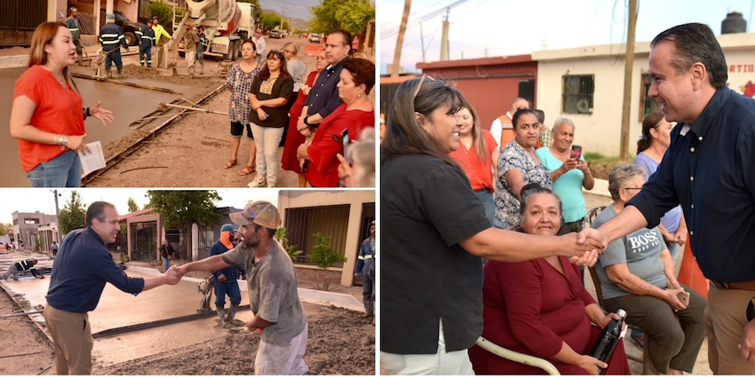 Constata Alcalde de Hermosillo avances de pavimentación en avenida Suaqui Grande; atestigua la aplicación de concreto junto a familias de las colonias Miguel Hidalgo y Eusebio Kino.