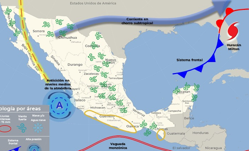Continuarán las temperaturas máximas de hasta 40°C, sobre las regiones centro, noroeste y sur, con algunos valores mayores en distintos puntos.