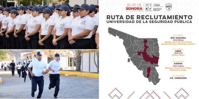 Hermosillo, Sonora.- Del 26 de marzo al 3 de abril, personal de la Universidad de la Seguridad Pública (USP) recorrerá Cajeme, Mátape, Ures y Huépac para convocar a jóvenes interesados en formarse como policías de proximidad anunció, la Secretaría de Seguridad Pública (SSP) en Sonora.
