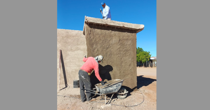 Empalme, Sonora.- Con ganas de trabajar y de responder a los compromisos contraídos con la comunidad, el Ayuntamiento, a través de Servicios Públicos Municipales, avanza en la construcción de los baños públicos en los campos deportivos del ejido Santa María.