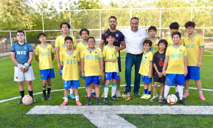 Hermosillo, Sonora.- Como parte de las acciones del Municipio para ofrecer mejores espacios deportivos, el presidente municipal de Hermosillo, Antonio Astiazarán Gutiérrez entregó a vecinas y vecinos del fraccionamiento Villas del Mediterráneo la rehabilitación del campo de fútbol de la zona.