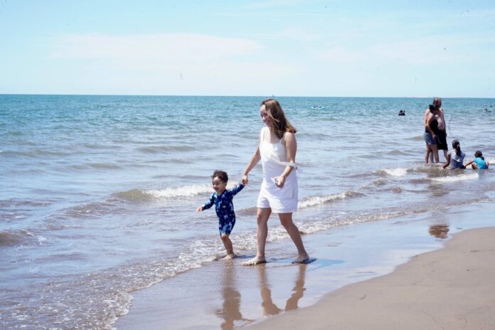 María Morales destacó el valor de disfrutar la playa en familia: «Muy a gusto gracias a Dios de tener el privilegio de estar aquí en la playa disfrutando».