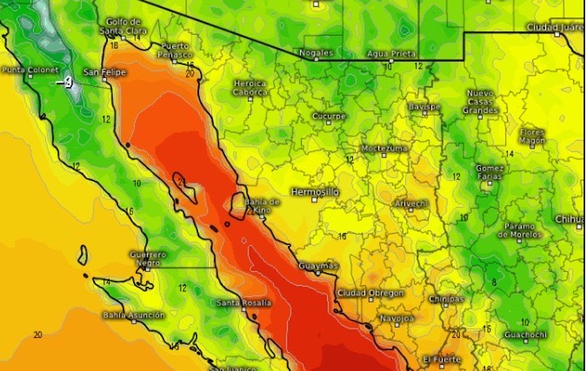#Hermosillo Descenderá temperatura hasta los 8 grados en la sierra; frente frío a su paso por Sonora estará generando rachas de viento de hasta 60 kmh.