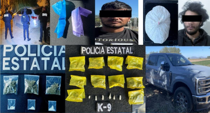 Al norte de Sonora, en la colonia Palma Dorada, en Caborca, la corporación realizó la detención de Uriel “N”, de 29 años de edad, al incautarle seis envoltorios que contenían hierba verde y sustancia granulada; asimismo, en el sector conocido como Miguel Hidalgo, en Guaymas, aseguraron tres envoltorios a un menor de edad.