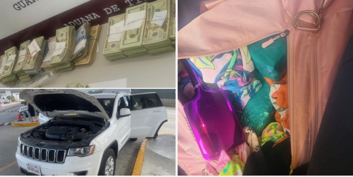 La conductora accedió de manera voluntaria; se estacionó en una de las bahías y, tras breve entrevista, manifestó viajar de San Diego, California a Tijuana. Al revisar una maleta color rosa en el interior del vehículo, los elementos localizaron varios envoltorios de color verde que parecían contener dinero en efectivo.