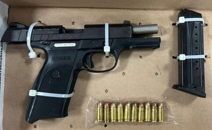 En los patrullajes por la capital, se logró el arresto de Rodrigo «N» al incautarle un arma de fuego calibre .9 mm con cargador, 10 cartuchos y dos envoltorios con narcótico.