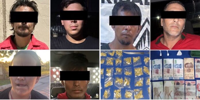 En la colonia Presidente, la Policía Estatal detuvo a José “N”, de 48 años de edad, cuando fue sorprendido con 10 paquetes de narcótico. Además, en el sector Las Misiones, fue detenido Ángel “N”, de 21 años, quien tripulaba una motocicleta y portaba 20 envoltorios con hierba verde.