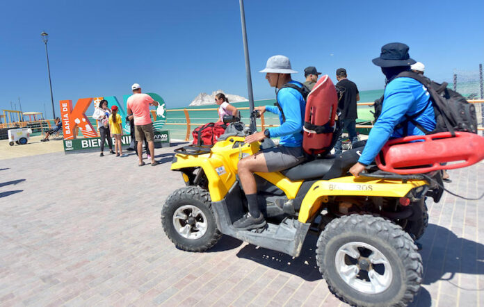 Se desplegaron 8 elementos de rescate acuático adicionales, además de los 4 elementos de base en Bahía de Kino, listos para atender auxilios en el mar, incidentes de salud o cualquier eventualidad.
