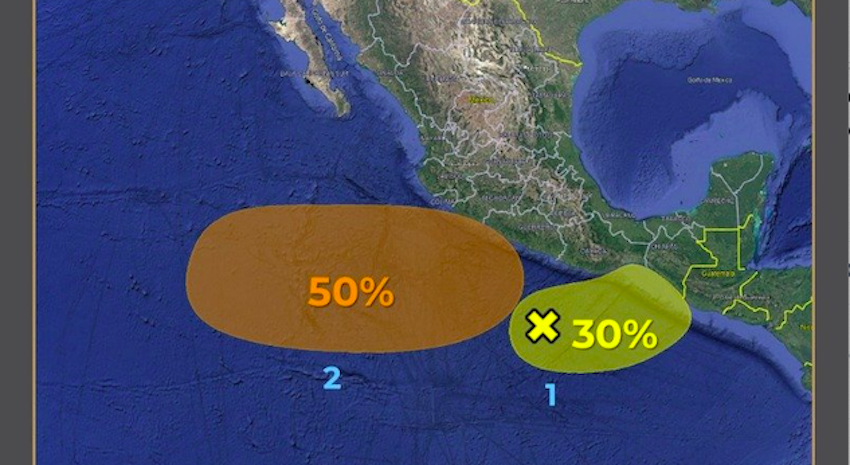 #NACIONAL Dos zonas de baja presión con probabilidad de desarrollo ciclónico; Conagua mantiene vigilancia en el océano Pacífico.