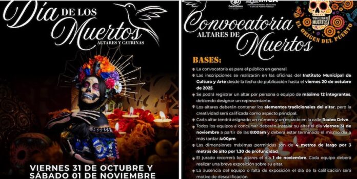 Puerto Peñasco, Sonora.- El Gobierno de Puerto Peñasco, a través de la Dirección de Cultura y Arte y en coordinación con la Unión de Comerciantes de Rodeo Drive, invita a la comunidad al evento de Día de los Muertos 2025 “Altares y Catrinas”, que se llevará a cabo los días 31 de octubre y 1 de noviembre de 2025, a partir de las 6:00 p.m. en Rodeo Drive (Mercado de Artesanías, calle 32).