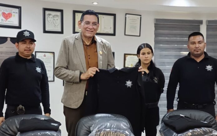 Presente en la entrega de los uniformes el coordinador de los policías auxiliares, Juan Antonio Palma Lugo.