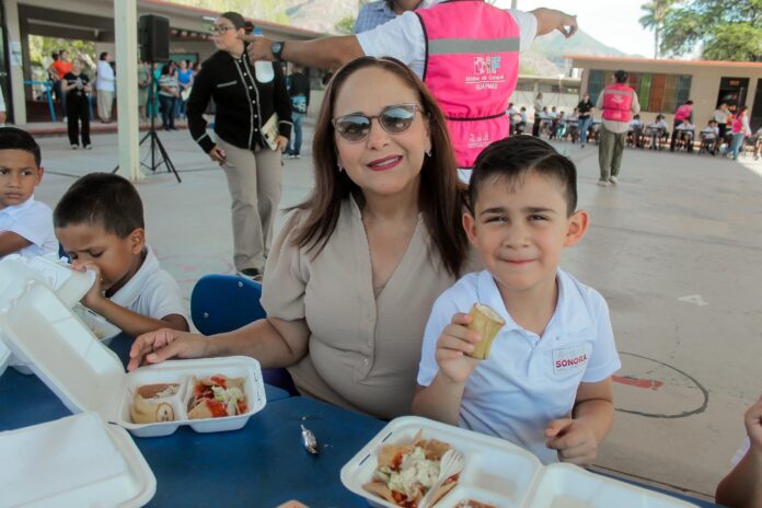 Guaymas, Sonora.- En apoyo a la sana alimentación de niños y niñas, esta mañana el Ayuntamiento de Guaymas en coordinación con DIF Guaymas, entregó 350 desayunos a través del comedor infantil Creciendo con Bienestar, en las escuelas Héroes del 13 de julio y Luis G. Dávila, beneficiando ya a la cuarta escuela con este programa.