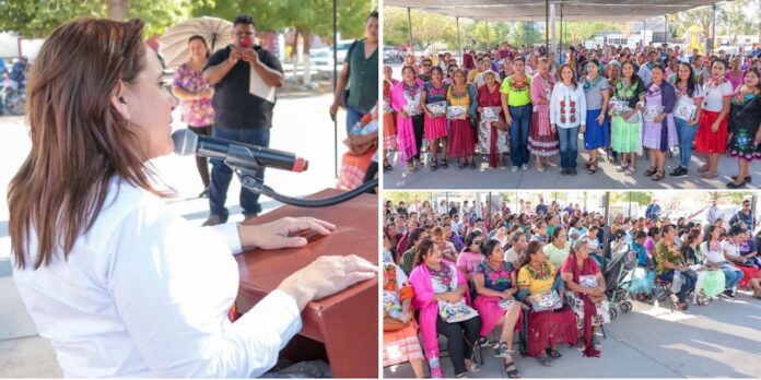 De manera simbólica, la alcaldesa entregó estos beneficios a instructoras de las comunidades de Vícam, Estación Oroz y Pótam, los cuales consisten en unos kits para bordar que incluyen material de costura para contribuir a que esta  extraordinaria actividad continúe elaborándose y que las nuevas generaciones se incorporen en la confección y conservación de esta tradición ancestral.