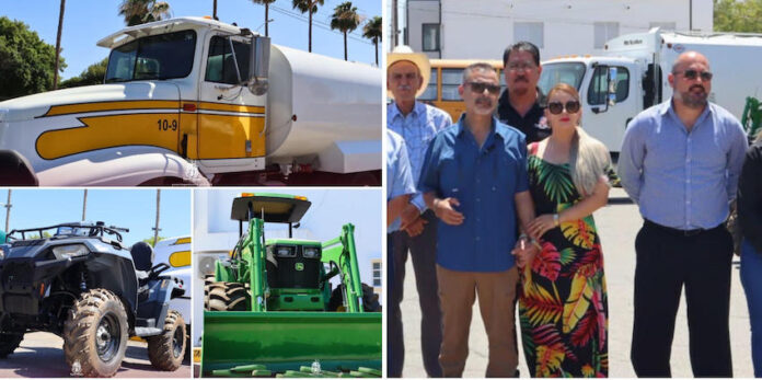 Durante el acto, el alcalde hizo entrega de: 2 pipas de agua con capacidad de 15 mil litros, 1 camión recolector de basura, 1 tractor, 3 vehículos tipo Rhino, 5 cuatrimotos, 30 tambos de 200 litros y 20 contenedores para residuos con capacidad de 1,100 litros.