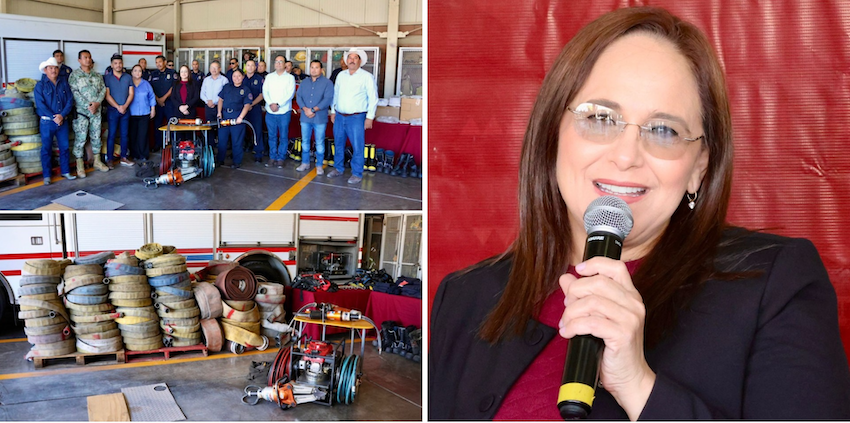 Entrega la doctora Karla Córdova González equipo a Bomberos Voluntarios, para fortalecer la capacidad de respuesta de los elementos.