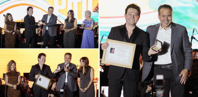Hermosillo, Sonora.- “Arturo sí es profeta en su tierra y hoy lo está demostrando como este reconocimiento”, dijo el presidente municipal Antonio Astiazarán Gutiérrez, al entregar la medalla Emiliana de Zubeldía al tenor sonorense Arturo Chacón, por parte del Ayuntamiento y de la Fundación Emiliana de Zubeldía, por contribuir de forma excepcional a la cultura y poner en alto el nombre de México, dentro de la celebración de las Fiestas del Pitic 2025.